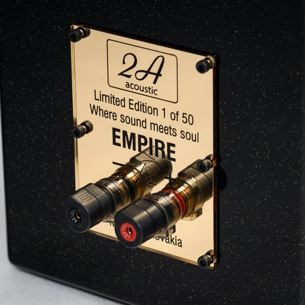 2A Acoustic Empire R: Referenčný regálový reproduktor. Limitovaná edícia 50 ks. Vylepšená výhybka, vnútorná kabeláž, Furutech terminály. Vynikajúca zvuková neutralita.