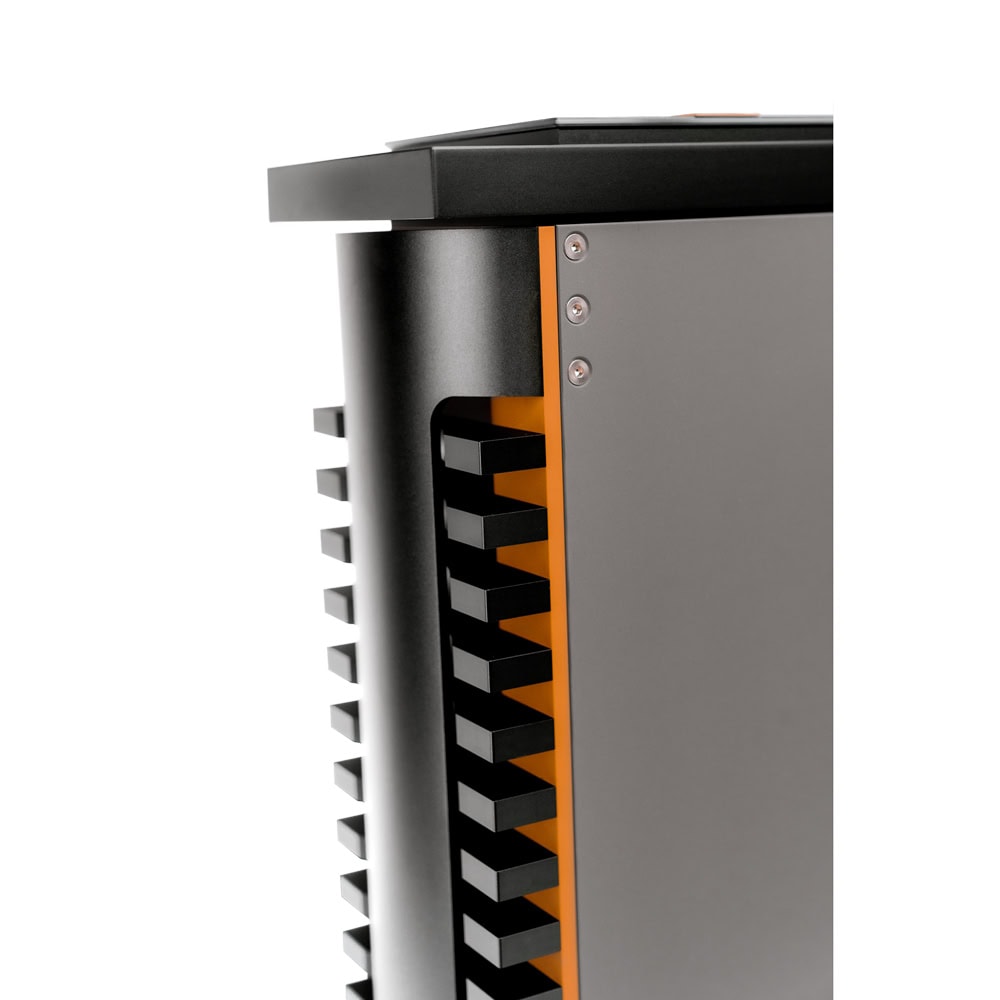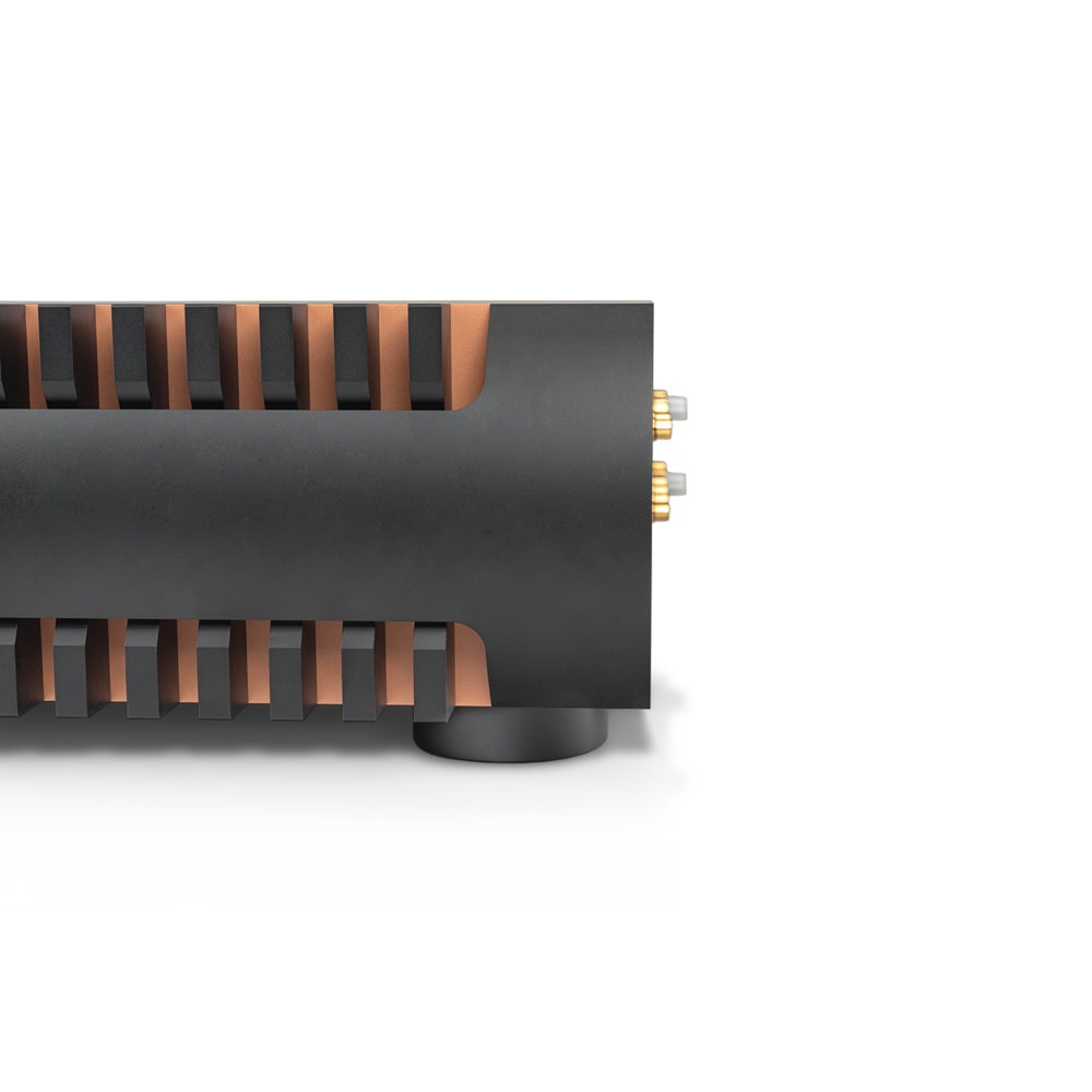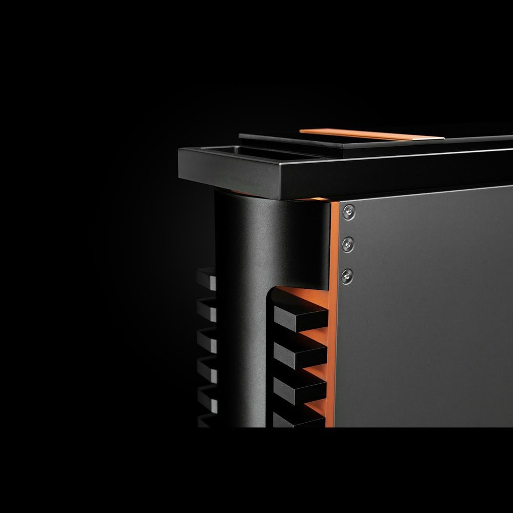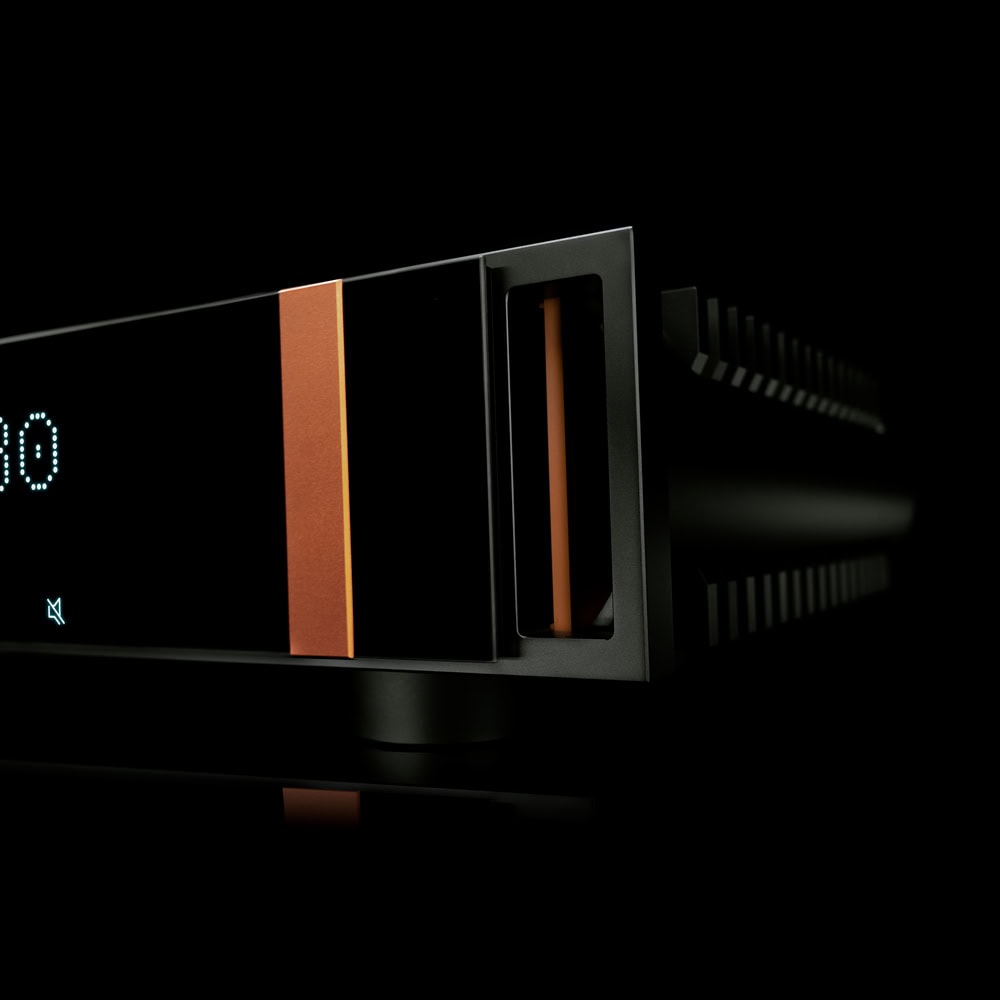 Okrem toho má zosilňovač chladiace prvky na bokoch a vrchnej časti, ktoré jasne nesú Flemmingov dizajnový rukopis. Vonkajšia časť tlačidla hlasitosti je pokrytá titánom a ovládací panel je navrhnutý ako veľký LCD dotykový displej.