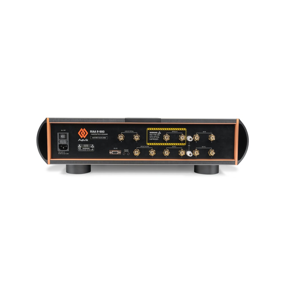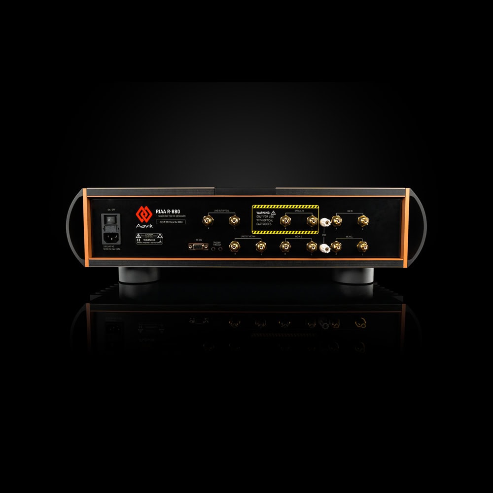 Vstupný stupeň Aavik R-880 pre optické prenosky obsahuje nastaviteľný hornopriepustný filter na potlačenie nežiaducich problémov s moduláciou. Odtiaľ potom náš RIAA filter a diskrétny operačný zosilňovač. Používame voliteľný dolnopriepustný filter určený na linearizáciu vysokofrekvenčnej odozvy optických prenosiek.